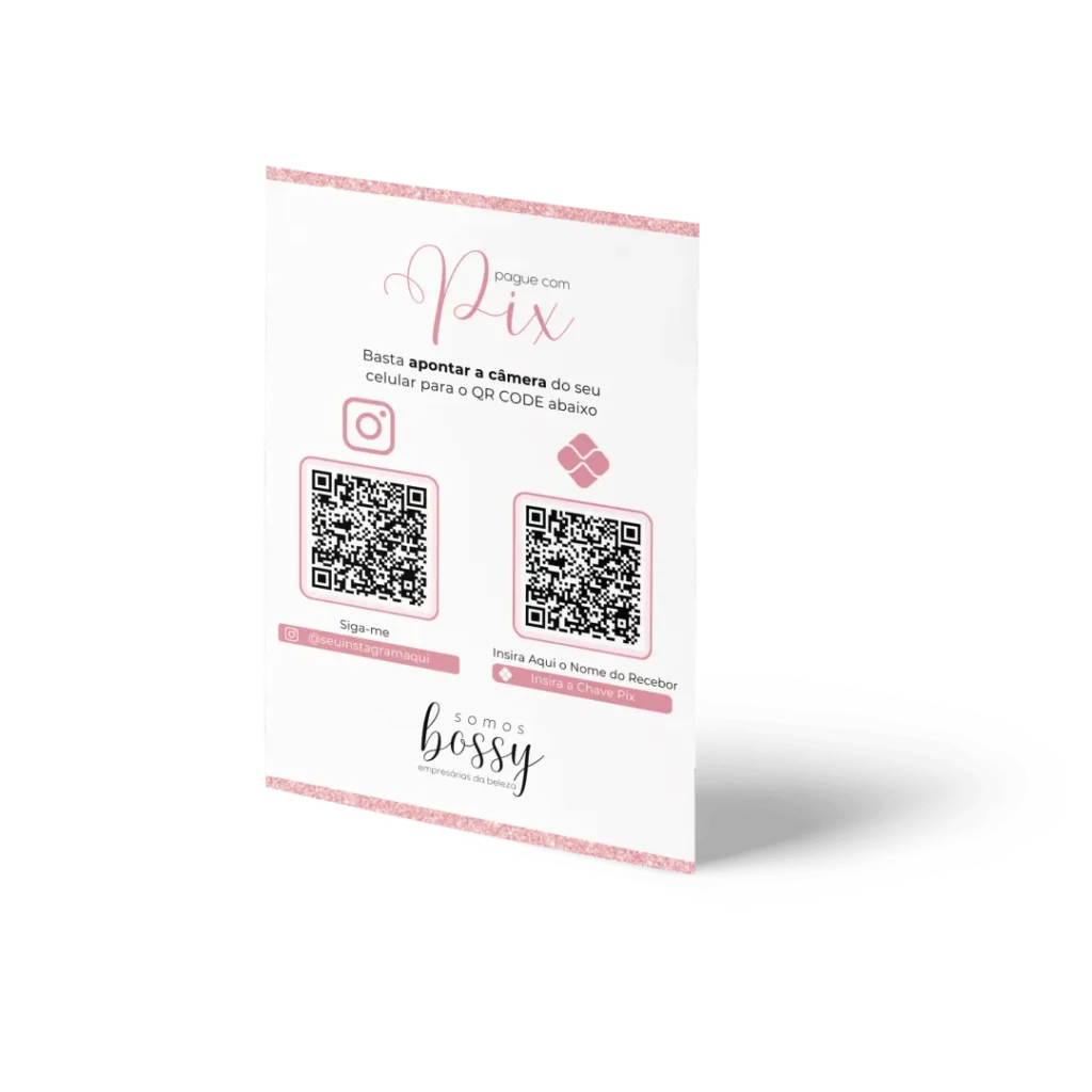 Com esse Template você consegue inserir o seu QR Code de pagamento e também o seu QR Code do Instagram.