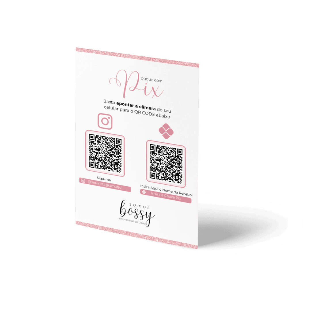 Com esse Template você consegue inserir o seu QR Code de pagamento e também o seu QR Code do Instagram.
